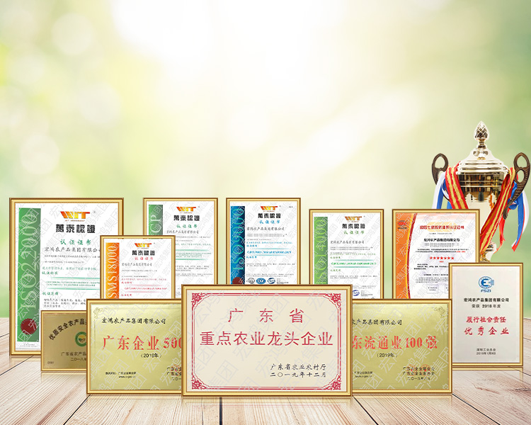 宏鴻農產品集團始于1997年,是一家集生態(tài)農業(yè)基地的開發(fā)及建設、基地直供食材一站式配送、農產品冷鏈物流、單品大宗貿易、凈菜加工、互聯(lián)網+農產品為一體的集團企業(yè)。每天可穩(wěn)定供應從基地源頭直達餐桌的各類蔬菜、肉類、禽類、水產、冷凍制品、水果、海鮮、糧油、調味品、副食品等23000多個品種;歷年來成功服務各級行政事業(yè)單位、軍隊、各類企業(yè)、大中小學校幼兒園、醫(yī)院、中大型餐廳客戶達22000多家。公司每年供應的蔬果逾千萬噸,公司每年供應的豬牛羊逾100萬頭。多年來,集團始終堅持以食品安全為立身之本,以為廣大民眾提供安全、放心的健康食材為己任,不斷強化食材從田間到餐桌的全流程質量管控,得到各級政府和社會大眾的廣泛認可。
